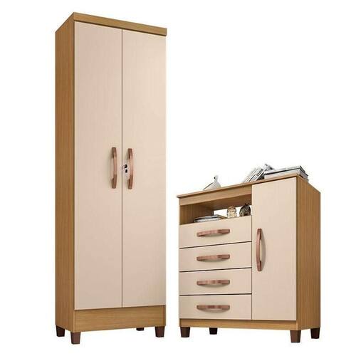 Cômoda Sapateira Cannes e Armário Multiuso Egito Carvalho Americano Off White Incorplac