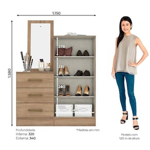 A Cômoda Multiuso Chris é uma peça belíssima e versátil que pode ser a solução ideal para quem busca organização e estilo para o quarto. Com duas portas e três gavetas, ela oferece bastante espaço para acomodar calçados e objetos pessoais. Além disso, os puxadores em ABS dão um toque moderno e sofisticado ao móvel. As três prateleiras são perfeitas para guardar sapatos, acessórios ou livros e ainda há um espelho para facilitar o uso diário. Com design elegante e acabamento impecável, a cômoda Chris é ideal para tornar qualquer ambiente mais aconchegante e funcional.
