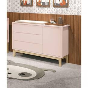Evidênciando um ar retrô com o modelo de seus pés em madeira maciça, a Cômoda Sapateira Classic New - MóveisAqui possui um desing clean que combina com vários estilos de decoração. É perfeita para a organização das roupinhas e acessórios do seu baby, proporciona um espaço para armazenamento e com divisória interna, para que a organização do dia-a-dia possa ser mais fácil. Possui puxadores embutidos, as aberturas ocorrem através de recortes no MDF que possibilitam o perfeito encaixe da mão para que possa abrir as portas e gavetas.