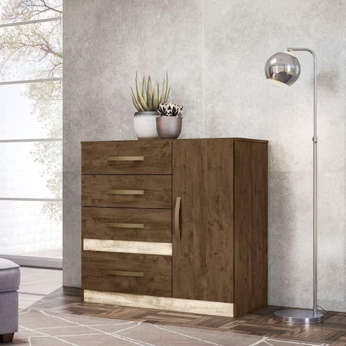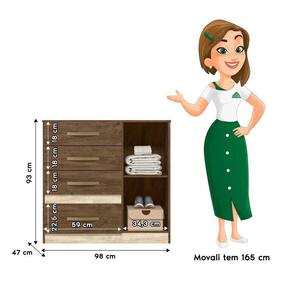 A Cômoda Vênus é uma excelente opção para quem busca espaço e organização no quarto. Feita em MDP, é resistente e fácil de limpar. Com quatro gavetas, uma porta e uma prateleira interna, oferece amplo espaço para guardar roupas e outros pertences. Equipada com puxadores em ABS e corrediças e dobradiças metálicas, a cômoda proporciona abertura suave das gavetas e da porta.