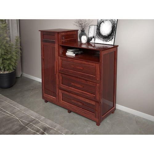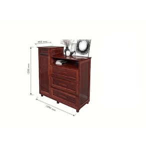 Cômoda Cuiabá, possui uma porta em MDF de 15 mm, três gavetas, porta joias e espelho, ideal para organizar seus pertences. Produzido com madeira Pinus (reflorestada) e HDF, corrediças metálicas, dobradiça de pressão, 5 pés de madeira maciça, puxadores de madeira maciça, o tampo em MDF de 15 mm, prateleira inferior interna em MDF de 9 mm. Inovação para compor o seu lar. Produto Montado: Sim Acabamento da Gaveta: Impressão Acabamento da Porta: Impressão Acabamento da Prateleira: Impressão Acabamento dos Pés: Verniz Altura do Espelho: 30 cm Altura dos Pés: 12 Altura Máxima dos Pés: 12.0000 Ambiente Principal: Quarto codigo_ean: 7909903495049 Complexidade da Montagem: Baixa: pode ser montado por uma pessoa sozinha Cor: Mel Cor do Produto: Mel Escala de Brilho: Brilhante Escala de Brilho da Gaveta: Semi-Brilho Escala de Brilho da Porta: Semi-Brilho Escala de Brilho da Prateleira: Semi-Fosco Espessura do Espelho: 2 mm Fita Integrada: Sim Formato do Espelho: Retangular Gaveta com Chave: Não Itens Inclusos: 1 Cômoda, Kit Ferragens e Manual de Montagem. Largura do Espelho: 25 cm Linha ou Coleção: Cuiabá Manual de Montagem e Instalação: https://product-hub-prd.madeiramadeira.com.br/879231/documents/50db3d2d-e6f2-4787-ac53-e28908c72f89591301manual.pdf Material da Gaveta: Madeira/HDF Material da Porta: Madeira/HDF Material da Prateleira: MDF Material do Fundo: Duratree Material do Puxador da Gaveta: Poliestireno/Cromado Material do Puxador da Porta: Poliestireno Material dos Pés: Madeira Maciça Material Principal: Madeira Maciça Necessita Montagem: Sim Origem do Produto: Nacional Peso: 38,5 kg Peso Máximo por Gaveta: 5 kg Peso Máximo por Prateleira: 10 kg Possui Espelho: Sim Possui Nichos: 01 Possui Pés: 05 Possui Portas: Sim Possui Prateleiras: Sim Possui Rodízio: Não Quantidade de Espelho: 01 Quantidade de Gavetas: 03 Gavetas Quantidade de Prateleiras: 01 Prateleira Recomendações de Uso, Manutenção e Limpeza: Deve-se tirar a poeira cuidadosamente com um pano seco ou espanador, para que não haja o perigo do pó sob a pressão e movimento do pano arranhar a superfície. Não usar produtos abrasivos e esponjas duras e ásperas. Sapatas Niveladoras: Não Sistema de Montagem: Parafusos Suporta Até (kg): 80 kg Tipo de Corrediça da Gaveta: Metálica Simples Tipo de Dobradiça/Corrediça da Porta: Metálica Tipo de Fixação do Espelho: Fita Dupla Face Tipo de Madeira Maciça: Pinus Tipo de Madeira Maciça dos Pés: Pinus Tipo de Porta: Bater Tipo de Puxador da Gaveta: Externo Tipo de Puxador da Porta: Externo Ean: 7909903495049