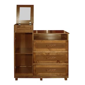 Cômoda Cuiabá, possui uma porta em MDF de 15 mm, três gavetas, porta joias e espelho, ideal para organizar seus pertences. Produzido com madeira Pinus (reflorestada) e HDF, corrediças metálicas, dobradiça de pressão, 5 pés de madeira maciça, puxadores de madeira maciça, o tampo em MDF de 15 mm, prateleira inferior interna em MDF de 9 mm. Inovação para compor o seu lar. Produto Montado: Sim Acabamento da Gaveta: Impressão Acabamento da Porta: Impressão Acabamento da Prateleira: Impressão Acabamento dos Pés: Verniz Altura do Espelho: 30 cm Altura dos Pés: 12 Altura Máxima dos Pés: 12.0000 Ambiente Principal: Quarto codigo_ean: 7909903495063 Complexidade da Montagem: Baixa: pode ser montado por uma pessoa sozinha Cor: Ypê Cor do Produto: Ypê Escala de Brilho: Semi-Brilho Escala de Brilho da Gaveta: Semi-Brilho Escala de Brilho da Porta: Semi-Brilho Escala de Brilho da Prateleira: Semi-Fosco Espessura do Espelho: 2 mm Fita Integrada: Sim Formato do Espelho: Retangular Gaveta com Chave: Não Itens Inclusos: 1 Cômoda, Kit Ferragens e Manual de Montagem. Largura do Espelho: 25 cm Linha ou Coleção: Cuiabá Manual de Montagem e Instalação: https://product-hub-prd.madeiramadeira.com.br/879234/documents/9e371e2d-4bb4-400c-ab09-2194292da88d591301manual.pdf Material da Gaveta: Madeira/HDF Material da Porta: Madeira/HDF Material da Prateleira: MDF Material do Fundo: Duratree Material do Puxador da Gaveta: Poliestireno/Cromado Material do Puxador da Porta: Poliestireno Material dos Pés: Madeira Maciça Material Principal: Madeira Maciça Necessita Montagem: Sim Origem do Produto: Nacional Peso: 38,5 kg Peso Máximo por Gaveta: 5 kg Peso Máximo por Prateleira: 10 kg Possui Espelho: Sim Possui Nichos: 01 Possui Pés: 05 Possui Portas: Sim Possui Prateleiras: Sim Possui Rodízio: Não Quantidade de Espelho: 01 Quantidade de Gavetas: 03 Gavetas Quantidade de Prateleiras: 01 Prateleira Recomendações de Uso, Manutenção e Limpeza: Deve-se tirar a poeira cuidadosamente com um pano seco ou espanador, para que não haja o perigo do pó sob a pressão e movimento do pano arranhar a superfície. Não usar produtos abrasivos e esponjas duras e ásperas. Sapatas Niveladoras: Não Sistema de Montagem: Parafusos Suporta Até (kg): 80 kg Tipo de Corrediça da Gaveta: Metálica Simples Tipo de Dobradiça/Corrediça da Porta: Metálica Tipo de Fixação do Espelho: Fita Dupla Face Tipo de Madeira Maciça: Pinus Tipo de Madeira Maciça dos Pés: Pinus Tipo de Porta: Bater Tipo de Puxador da Gaveta: Externo Tipo de Puxador da Porta: Externo Ean: 7909903495063