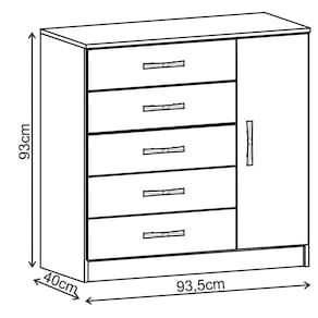Cômoda: ------------------------------------------- Possui Espelho: Não Quantidade de Gavetas: 5 Gavetas Quantidade de Portas: 1 Porta