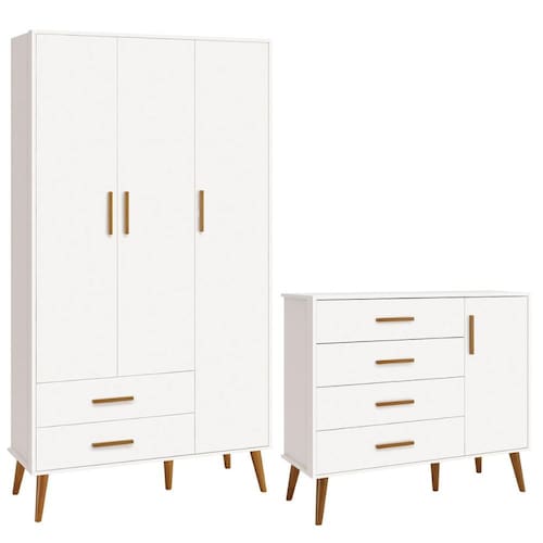 Com design retrô e pés em madeira, é funcional e seguro, oferecendo cabideiro metálico, sistema antitombamento e amplo espaço de armazenamento.