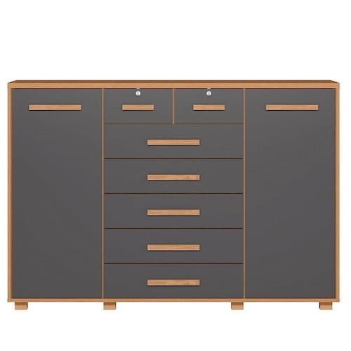 Cômoda Sapateira Grande 7 Gavetas 2 Portas Mdp/mdf Santana Freijó/titanium A cômoda sapateira é ideal organizar seu espaço com praticidade e estilo. Sua estrutura é em MDP de alta qualidade. Seu design é moderno. Com 7 gavetas espaçosas e 2 portas, esta cômoda oferece amplo espaço para guardar suas roupas, acessórios e, é claro, seus sapatos favoritos. As gavetas deslizam suavemente com as corrediças telescópicas, facilitando o acesso, enquanto as portas permitem armazenar itens maiores de forma discreta. Dimensões da Cômoda Sapateira Santana: - Altura: 110 cm - Largura: 160 cm - Profundidade: 45 cm
