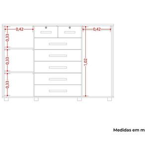 Característica da Cômoda Sapateira Santana: - Estrutura em MDP/MDF; - Acabamento de pintura em UV; - Tampo de 25mm; - 2 porta com dobradiças metálicas; - 7 Gavetas com corrediças telescópicas; - Chave nas gavetas menores; - Puxadores em MDF revestidos; - 8 pés em ABS; - 2 prateleiras; - Cabideiro em alumínio; - Não acompanha itens de decoração ou quaisquer objetos fora o móvel na imagem; - Imagens interna meramente ilustrativa para ver a divisão do produto; - Montagem por conta do Comprador;