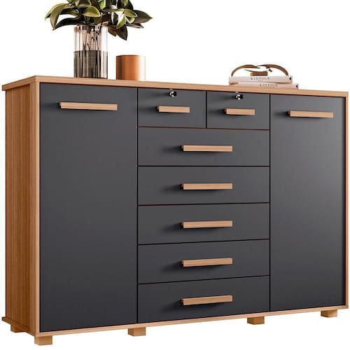 Cômoda Sapateira Grande para Quarto 7 Gavetas 2 Portas MDP/MDF Santana