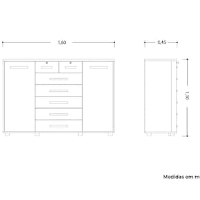 Dimensões da Cômoda Sapateira: - Altura: 110 cm - Largura: 160 cm - Profundidade: 45 cm