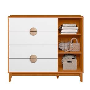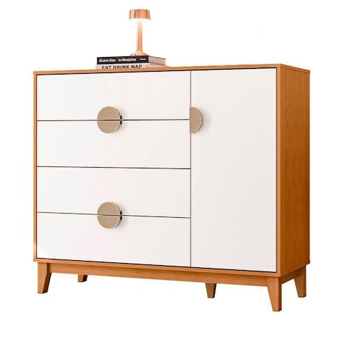 Comoda Sapateira Ipe 4 Gaveira Quartos Cinamomo Com Branco - Albatroz Com design moderno e funcional, a Cômoda Sapateira Ipê é a escolha ideal para quem busca praticidade sem abrir mão da elegância.Possui 1 porta com dobradiças slow motion e 4 gavetas espaçosas com corrediças telescópicas, proporcionando excelente capacidade de organização para roupas, calçados e acessórios.Os puxadores em ABS com acabamento metalizado dourado e aplique que remete à palha natural trazem um toque de sofisticação ao móvel, enquanto os pés em madeira reforçam sua estabilidade e valorizam o design.Com acabamento refinado e linhas retas, a Sapateira Ipê harmoniza perfeitamente com diferentes estilos de ambiente, oferecendo beleza, resistência e funcionalidade no mesmo produto.Dimensões:Altura: 101 cmLargura: 120 cmProfundidade: 47 cmObservações:- Porta com dobradiças slow motion e 4 gavetas com corrediças telescópicas- Puxadores metalizados com aplique que remete à palha natural- Pés em madeira que proporcionam firmeza e elegância- Design moderno e clean, com excelente aproveitamento interno- Ideal para organização de roupas, calçados e acessórios- Estrutura 100% MDF