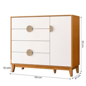 Marca: Albatroz Móveis | Altura: 101 cm | Largura: 120 cm | Comprimento: 47 cm | Altura Embalado: 21,3 | Largura Embalado: 50,2 | Comprimento Embalado: 130 | Peso: 59,7 kg | Peso Embalado: 59,7 | Modelo: Cômoda Sapateira Ipe 4 Gavetas 1 Porta | Material: MDF em 15 mm com pés em Madeira Maciça | Precisa de montagem?: Sim | Descrição do tamanho: 101 x 120 x 47 cm | Garantia em meses: 03 meses de garantia para de fabricação. | Estado de origem: SP | Tonalidade: Multicolorido | Quantidade de gavetas: 4 | Origem: SP | Profundidade: 47 cm | Com portas: Sim | É desmontável: Não | Fonte do produto: | Com pés: Sim | Material das corrediças: Metal | É resistente à umidade: Não | Acabamento: Pintura UV | Material das gavetas: MDF | Estilo: Moderno | Material do corpo: MDF | É kit: Não | Material das dobradiças: Metal | Quantidade de prateleiras: 2 | Com corrediças: Sim | Inclui acessórios de montagem: Sim | Com alças: Sim | Com rodas: Não | Condição do item: | Quantidade de gavetas com chave: 0 | Com prateleiras: Sim | Tipo de móvel: Cômoda | Quantidade de portas: 1 | Inclui manual de montagem: Sim | Com prateleiras ajustáveis: Não | Quantidade de caixas de embalagem: 2 | Código INMETRO: Não se aplica | Código ANVISA: Não se aplica | Baterias são necessárias?: Não | Código da Homologação ANATEL: Não se aplica | Código MAPA: Não se aplica | Principais Características do Produto 0: Possui portas com dobradiças slow motion | Principais Características do Produto 1: Possui pés em madeira maciça | Principais Características do Produto 2: Suporta até 43 kg distribuídos | Certificação de teste externa: Não aplicável | Componentes incluídos: Cômoda e manual de montagem | Is Fragile: Sim | do modelo: 24443 | Quantidade de itens: 1 | da peça: 24443 Cor: Cinamomo/Branco