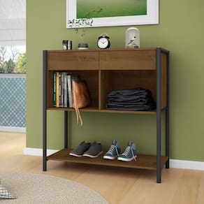 Que tal renovar a decoração da sua casa com o(a) Cômoda Sapateira Multiuso Sevilha 02 Gavetas Preto Demolição - Desk Design?
