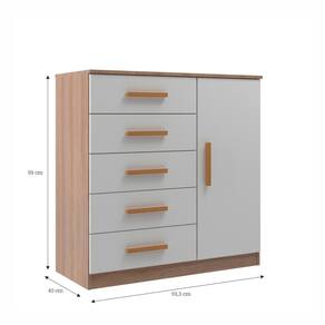 O estilo contemporâneo da linha Premium da Evidencia Móveis traz um toque especial à decoração da sua casa. Com uma porta e 5 gavetas, esta cômoda oferece amplo espaço para organizar suas roupas, calçados e objetos pessoais de forma prática e eficiente, permitindo que você mantenha tudo em ordem e à mão.