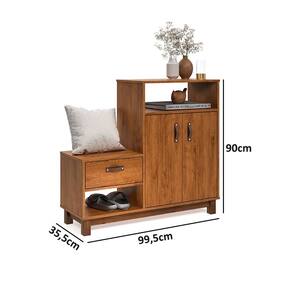 Características: Estrutura MDP Acabamento UV 03 Portas Articuladas com Dobradiças Metálicas 01 Prateleira 02 Nicho Amplo Espaço Interno Assento para Troca de Calçado Puxador Exclusivo em Corino Pés em Madeira Maciça Suporta 80kg Distribuídos