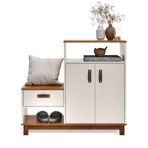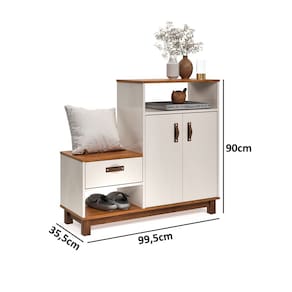 Características: Estrutura MDP Acabamento UV 03 Portas Articuladas com Dobradiças Metálicas 01 Prateleira 02 Nicho Amplo Espaço Interno Assento para Troca de Calçado Puxador Exclusivo em Corino Pés em Madeira Maciça Suporta 80kg Distribuídos