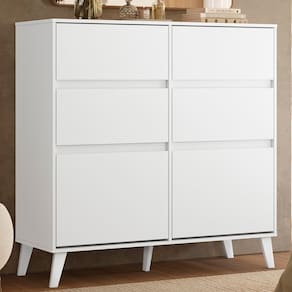 Móvel funcional e cheio de estilo, com 4 gavetas de corrediças telescópicas para abertura suave e 2 portas basculantes com sapateira dupla, garantindo excelente aproveitamento interno. Os pés estilo retrô completam o design, trazendo charme e personalidade ao ambiente. Ideal para organização com elegância. Produto Montado: Sim Acabamento da Gaveta: Pintura UV Acabamento da Porta: Pintura UV Altura dos Pés: 15,8 cm Altura Máxima dos Pés: 15.8000 Ambiente Principal: Quarto codigo_ean: 7900288321985 Complexidade da Montagem: Média: pode ser montado por mais de uma pessoa e/ou necessite de maior conhecimento para montagem Cor: Branco Cor do Produto: Branco Cor Interna: Branco Escala de Brilho: Fosco Escala de Brilho da Gaveta: Fosco Escala de Brilho da Porta: Fosco Gaveta com Chave: Não Informações Complementares: 02 Portas basculante com sapateira dupla Itens Inclusos: 01 Cômoda, Kit Ferragem e Manual de Montagem Linha ou Coleção: Dora Manual de Montagem e Instalação: https://product-hub-prd.madeiramadeira.com.br/922997265/documents/994318b3-a9bc-4437-9543-4f4dee1fb619337309867517697194551992.pdf Marca: Albatroz Móveis Material da Gaveta: MDP Material da Porta: MDP Material do Fundo: HDF Material dos Pés: Plástico Material Principal: MDP Necessita Montagem: Sim Origem do Produto: Nacional Peso: 51,75 kg Peso Máximo por Gaveta: 5 kg Possui Espelho: Não Possui Nichos: Não Possui Pés: 05 Possui Portas: Sim Possui Prateleiras: Não Possui Rodízio: Não Quantidade de Gavetas: 04 Gavetas Recomendações de Uso, Manutenção e Limpeza: Limpar com flanela ou pano macio seco, não utilizar produtos abrasivos, desengordurantes, álcool ou solvente. não expor o produto diretamente à luz solar e à umidade. Sapatas Niveladoras: Não Sistema de Montagem: Parafusos e Minifix Suporta Até (kg): 30 kg Tipo de Cômoda: Adulto Tipo de Corrediça da Gaveta: Metálica Telescópica Tipo de Dobradiça/Corrediça da Porta: Plástica Tipo de Porta: Basculante Tipo de Puxador da Gaveta: Não Possui Tipo de Puxador da Porta: Não Possui