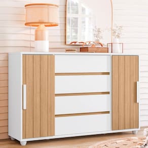 O design não apenas com 4 gavetas espaçosas, mas também 2 portas deslizantes elegantes, proporciona um amplo espaço de armazenamento para todos os itens essenciais do seu quarto. Seja para guardar suas roupas, lençóis ou acessórios, essa peça versátil tem tudo o que você precisa; afinal essa cômoda foi projetada pensando nas suas necessidades, o que a torna ideal para quarto de casal ou quarto de solteiro. Além disso, a opção de montagem flex das portas garantirá que você escolha o lado da tonalidade que mais lhe agrada, ou seja, no design final, você quem manda. Demais não é mesmo?!