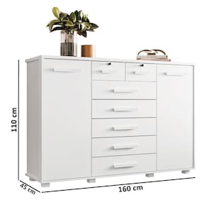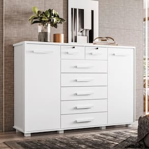 Conheça a Cômoda Sapateira para Quarto 160cm 2 Portas 7 Gavetas Fontaine A02 Branco Fosco, da Mpozenato, um item indispensável para qualquer quarto!