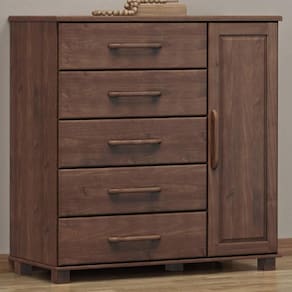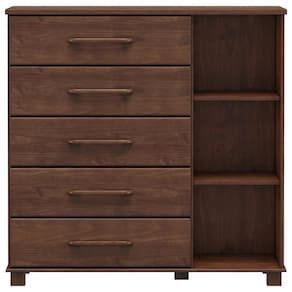 Cor: Café | Altura: 124 cm | Largura: 125 cm | Quantidade de gavetas: 5 | Requer montagem: Sim | Linha: Quarto | Profundidade: 49 cm | Peso: 53 kg | Com alça: Sim | Com corrediças: Sim | Material das corrediças: Metálico | Com prateleiras: Não | Com rodas: Não | É personalizado: Não | Com bandeja removível: Não | Inclui ferramentas de montagem: Não | Material do cabo: Madeira | Material das dobradiças: Metálicas