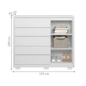MATERIAL PRINCIPAL: MDP | LARGURA DO PRODUTO (CM): 125 | QUANTIDADE DE GAVETAS: 5 | CORES DO PRODUTO (FILTRO DE CORES): Branco | PESO DO PRODUTO (KG): 56.4 | CONTEÚDO DA EMBALAGEM: 1 Cômoda | LARGURA PRODUTO COM EMBALAGEM (CM): 48.2 | MATERIAL PARA FILTRO: MDP | ALTURA DO PRODUTO COM EMBALAGEM (CM): 23.4 | MARCA: CasaH | COR PREDOMINANTE: Branco | COMPRIMENTO PRODUTO COM EMBALAGEM (CM): 127.9 | INSTRUÇÕES/CUIDADOS: Limpar com pano macio e seco, não utilizar produtos abrasivos | PRODUTO: Cômoda | QUANTIDADE DE PORTAS: 1 | ALTURA DO PRODUTO (CM): 109 | ESTADO DE ORIGEM: PR | PRODUTO PRECISA DE MONTAGEM?: Sugerimos a contratação de um montador para a montagem do produto. Não nos responsabilizamos por causadas no ato da montagem. | DESCRIÇÃO DO TAMANHO: 109x125x43 cm | COMPRIMENTO DO PRODUTO (CM): 43 | PESO PRODUTO COM EMBALAGEM (KG): 58.4