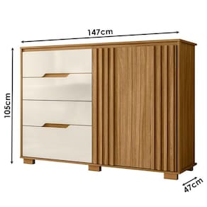 Começou a procurar móveis para seu quarto? Então apresentamos para você esta bela cômoda da linha Texas. Composta por duas portas com detalhes ripados adicionam um toque de requinte. Contando com quatro gavetas espaçosas equipadas com corrediças telescópicas, garante um deslizamento mais suave e seguro. Para completar, os pés em PVC garantem mais estabilidade e facilita na limpeza. Fabricado pela Moval, é desenvolvido em 100% MDP, sendo a escolha perfeita para quem deseja sofisticação e praticidade na organização quarto, aproveite!