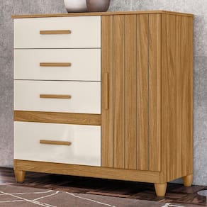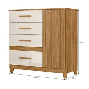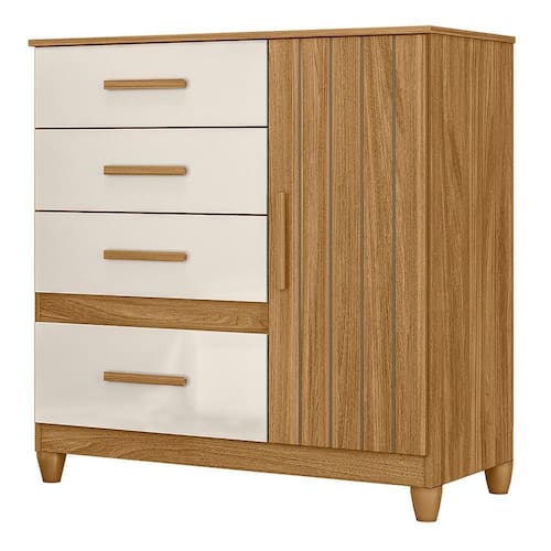 ESPECIFICAÇÕES: Estrutura em MDP Pintura UV 1 Porta Dobradiças metálicas Prateleira interna 4 Gavetas Corrediças metálicas Puxadores em MDF Tampo com amplo espaço Pés em PVC