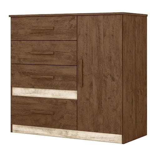 Cômoda Sapateira Vênus 1 Porta E 4 Gavetas Flex Castanho Wood/avelã Wood - Moval Castanho Wood/avelã Wood Cômoda Sapateira Vênus 1 Porta e 4 Gavetas - Moval A Cômoda Sapateira Vênus é uma peça que combina funcionalidade e elegância para o seu quarto. Com estrutura robusta em MDP e acabamento em pintura UV, ela oferece durabilidade e um visual sofisticado. A Cômoda Vênus conta com 1 porta equipada com dobradiças metálicas e uma prateleira interna que proporciona organização extra. Além disso, suas 4 gavetas com corrediças metálicas garantem um deslizar suave e armazenamento eficiente. Os puxadores em MDF adicionam um toque de charme, enquanto o tampo espaçoso oferece praticidade para você acomodar diversos objetos. A Cômoda Sapateira Vênus é a escolha perfeita para quem busca qualidade e estilo em um só móvel. ESPECIFICAÇÕES: - Estrutura em MDP - Pintura UV - 1 Porta - Dobradiças metálicas - Prateleira interna - 4 Gavetas - Corrediças metálicas - Puxadores em MDF - Tampo com amplo espaço