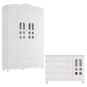 Cômoda Selena e Guarda Roupa Infantil New Selena 4 Portas Branco Brilho – Carolina