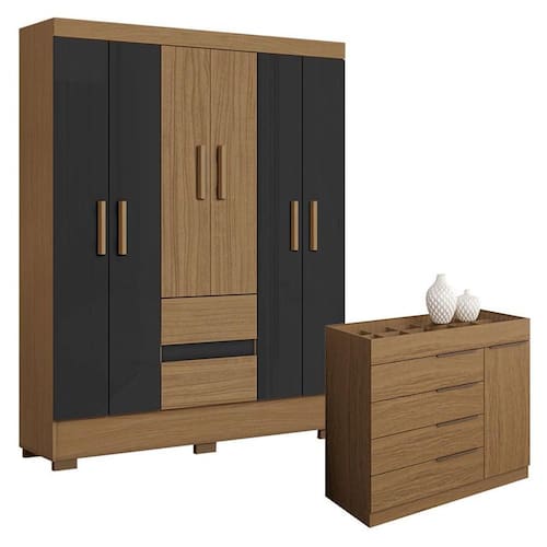 Buscando conjunto de cômoda e guarda roupas ideal para deixar o quarto mais moderno e prático? Com design simples e atemporal, apresentamos a Cômoda Sevilha e o Guarda Roupa Casal Coimbra desenvolvidos pela Aramóveis, contam com amplo espaço interno para manter a organização das roupas, sapatos e outros pertences, confira e aproveite!