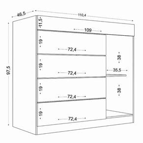 Medidas internas da gaveta maior: 100 cm(L) x 40 cm(P) x 9,5 cm(A);