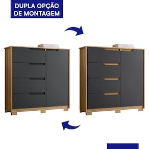 A Cômoda Sole 1 Porta e 4 Gavetas Flex combina praticidade e estilo em um só móvel. Feita em MDP com pintura UV, conta com 1 porta, prateleira interna e 4 gavetas com corrediças telescópicas, garantindo organização eficiente. Os puxadores em cava e os pés em ABS dão um toque moderno, enquanto a versatilidade na montagem permite escolher entre duas cores nas vistas, adaptando-se ao seu estilo de decoração.