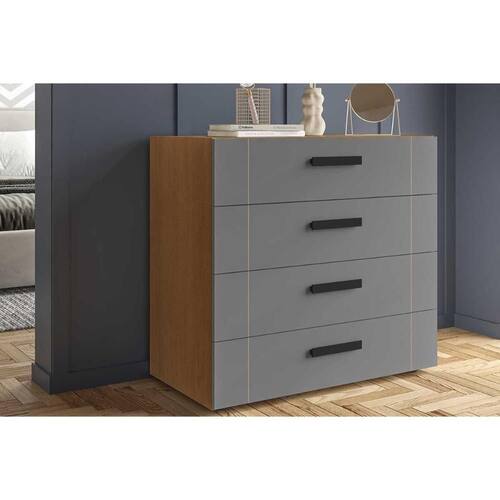 Cômoda de Quarto Lisboa c/ 4 Gavetas Freijo/Cinza - Politorno