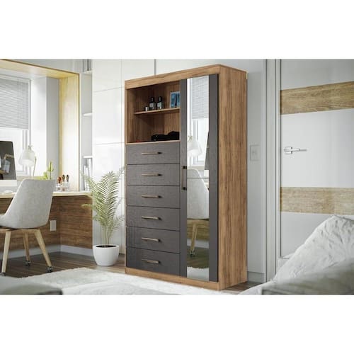Cômoda de Quarto Marabá 1.6 c/ 1 Porta 2 Nichos e 6 Gavetas c/ Espelho Atacama/Grafitte - Santos Andirá