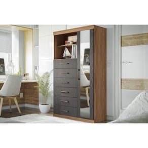 Cômoda de Quarto Marabá 1.6 c/ 1 Porta 2 Nichos e 6 Gavetas c/ Espelho Jatoba/Grafitte - Santos Andirá