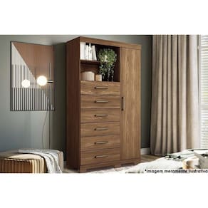 Cômoda de Quarto Marabá 1.6 c/ 1 Porta 2 Nichos e 6 Gavetas c/ Pés Jatoba - Santos Andirá Marca: Santos Andirá