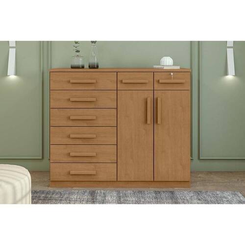 Cômoda de Quarto Toronto New c/ 2 Portas e 8 Gavetas Rovere/Amêndoa - Lopas