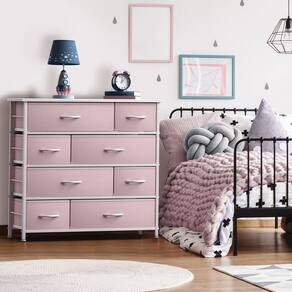- Cômoda com 8 gavetas (rosa) — o estilo encontra a função com esta cômoda, completa com uma superfície de madeira e gavetas de armazenamento coloridas — Combina lindamente com a coleção de móveis dobráveis Sorbus