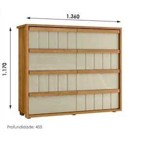 Diferenciais do produto: Acabamento padrão Madetec 100% MDF, Moldura envoltória de 25mm, Gavetas com ripado angular, 8 Gavetas com corrediças telescópicas, Puxadores em MDF estilo cava, Moldura envoltória e tampo de 25mm, Largura de 1,36m.