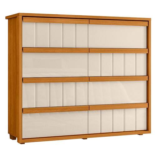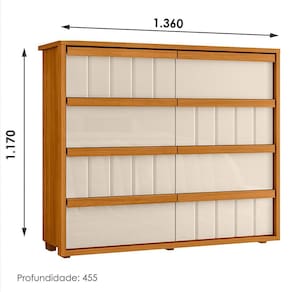 ESPECIFICAÇÕES: Estrutura em MDF Pintura UV 8 Gavetas Corrediças telescópicas Detalhe ripado angular Puxadores em MDF estilo cava Tampo e moldura envoltória e em MDF de 25mm Pés em poliestireno de 50mm