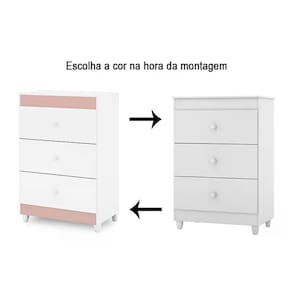 Observações: - A PR MÓVEIS se responsabilizará pela dos produtos até onde as rodovias alcançam, fluviais ou aéreas devem ser cotadas a parte - As imagens são ilustrativas, não acompanham objetos de decoração - A montagem será de responsabilidade do comprador. Não nos responsabilizamos, no ato da , por subir escadas/elevadores ou por guincho em apartamentos. Eventuais despesas são de responsabilidade do comprador. - Confira as dimensões do produto e certifique-se de que passará normalmente por supostos elevadores, portas, escadas e/ou corredores de sua residência. Para mais informações, acesse nossa Central de . Quantidade de Gavetas: 3 | Produto: Cômodas | Tonalidade: Multicolorido | Fabricante: Peternella Móveis Cor: Rosê/Branco
