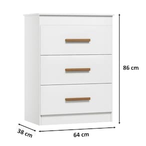 Possui 3 gavetas espaçosas, perfeitas para guardar roupas, acessórios, roupas íntimas e objetos pessoais. Os puxadores moderno garantem um visual delicado e facilitam o manuseio, sendo ideais para quartos infantis e juvenis. Conta com pés em plástico resistente, que proporcionam estabilidade, durabilidade feita em MDP e pintura UV facilita limpeza, com corrediças metálicas.