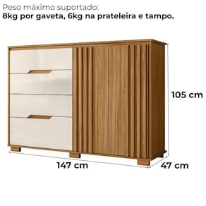 Cômoda Texas alia funcionalidade e design moderno para organizar seu ambiente com estilo. Estrutura em MDP (gavetas e tampo 15 mm / base e fundo 12 mm) com acabamento em pintura UV. Composta por 4 gavetas (sendo 1 gavetão) equipadas com corrediças metálicas, portas com detalhes ripado (baixo relevo) equipadas com dobradiças (35mm) com amortecedor, puxadores em cava e pés em PVC. Este produto será entregue em 02 volumes.