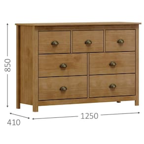 A Cômoda Topázio combina beleza e funcionalidade em uma peça robusta e charmosa. Com estrutura em madeira maciça de pinus de reflorestamento e acabamento em pintura acetinada PU e UV, oferece durabilidade e um visual sofisticado. Possui 7 gavetas espaçosas com corrediças telescópicas, puxadores metálicos em ouro envelhecido e pés alongados em madeira maciça, garantindo praticidade e um toque clássico à decoração. Ideal para quem busca organização com estilo.