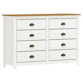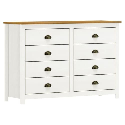 A Cômoda Topázio combina beleza e funcionalidade em uma peça robusta e charmosa. Com estrutura em madeira maciça de pinus de reflorestamento e acabamento em pintura acetinada PU e UV, oferece durabilidade e um visual sofisticado. Possui 8 gavetas espaçosas com corrediças telescópicas, puxadores metálicos em ouro envelhecido e pés alongados em madeira maciça, garantindo praticidade e um toque clássico à decoração. Ideal para quem busca organização com estilo.