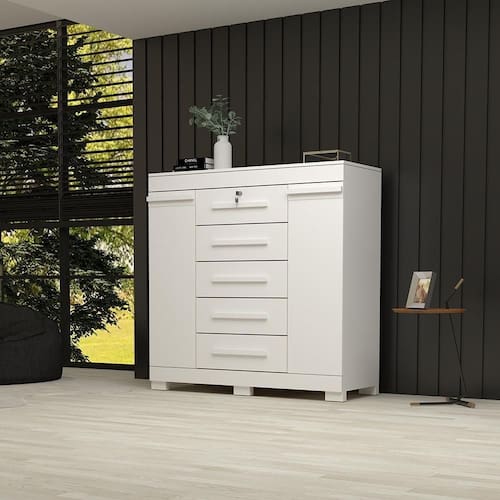 Transforme seu espaço com a cômoda Turquia, feita exclusivamente em MDF de alta qualidade. Com 5 gavetas espaçosas, incluindo uma com tranca para seus itens mais preciosos, e dois sapateiros integrados, esta cômoda oferece praticidade e elegância em cada detalhe. Organize seus pertences com estilo e segurança, graças ao design pensado para otimizar seu ambiente. Além disso, os puxadores em MDF revestido adicionam um toque de sofisticação. Experimente a funcionalidade e o charme da cômoda Turquia em sua casa.