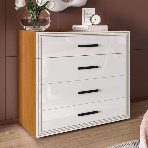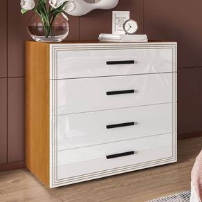 O(a) Cômoda Valência 4 Gavetas Freijó/Branco - Politorno é produzido em MDF e MDP na escala de brilho Semi-Fosco, e possui um grau de dificuldade de montagem: Médio.