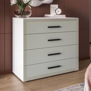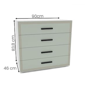 O(a) Cômoda Valência 4 Gavetas Verde/Branco - Politorno  é produzido em MDF e MDP na escala de brilho Semi-Fosco, e possui um grau de dificuldade de montagem: Médio.