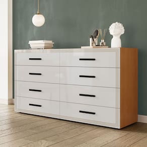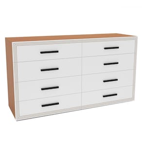 O(a) Cômoda Valência 8 Gavetas Freijó/Branco - Politorno é produzido em MDF e MDP na escala de brilho Semi-Fosco, e possui um grau de dificuldade de montagem: Médio.
