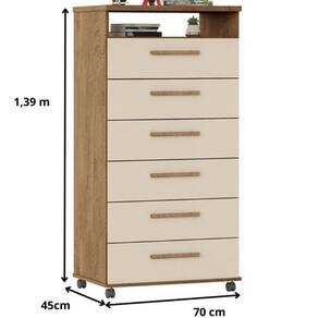 Requer montagem: Sim | Peso do Produto: 46 | Cor: Amêndoa / Off White | Tonalidade: Marrom Claro | Altura: 139 | Largura: 45 | Acompanha Pia: Não | Acabamento: PiNTURA UV | Marca: Milani Movelaria | Fabricante: Milani Movelaria | Tipo de móveis: Cômoda | Profundidade: 70 | Materiais do corpo: MDP 15MM | Modelo: Cômoda Veneza 6 gavetas Amêndoa Off White | Inclui manual de montagem: Sim | Quantidade de caixas de embalagem: 2