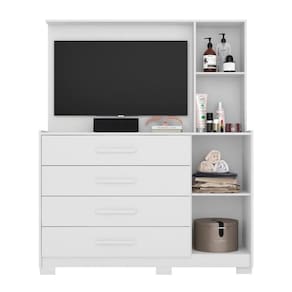 Cômoda Veneza Branco Com Espelho A Cômoda é o complemento ideal para o seu quarto e para você que procura um móvel com design moderno para seu quarto.