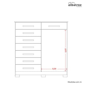 Características do Produto: Marca: Albatroz Modelo: Verona Material do Produto: MDP Material da Porta: MDP Tipo de Pintura: Pintura UV Acabamento da Pintura: Fosco Material do Puxador: MDF Revestidos Tipo de Cabideiro: Madeira Tipo de Gaveta: Externa Tipo de Corrediça: Telescópica Tipo de Porta: Bater Tipo de Dobradiça: Metálica Material dos Pés: ABS Possui Gavetas: Sim Q. de Gavetas: 8 Possui Portas: Sim Q. de Portas: 2 Possui Pés: Sim Q. de Pés: 6 Necessita Montagem: Sim Peso Suportado Pelas Gavetas -kg-: 5 Complexidade de Montagem: Alta Complexidade. Recomendasse a Contratação de Montador Profissional. Manutenção e Limpeza: Limpar Com Flanela ou Pano Macio Seco, Não Utilizar Produtos Abrasivos, Desengordurantes, Álcool ou Solvente. Não Expor o Produto Diretamente à Luz Solar e à Umidade.